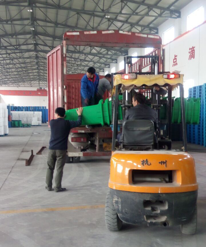 塑料垃圾桶裝車發走